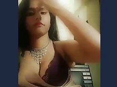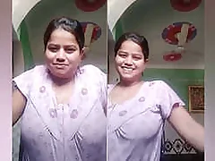 Adorable Desi girl teasing involving her perky heart of hearts